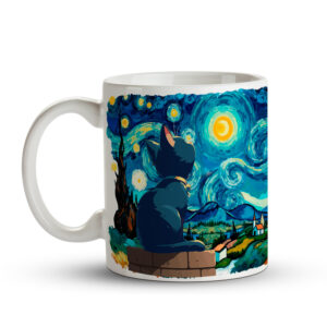 Caneca Gato na Noite Estrelada de Van gogh