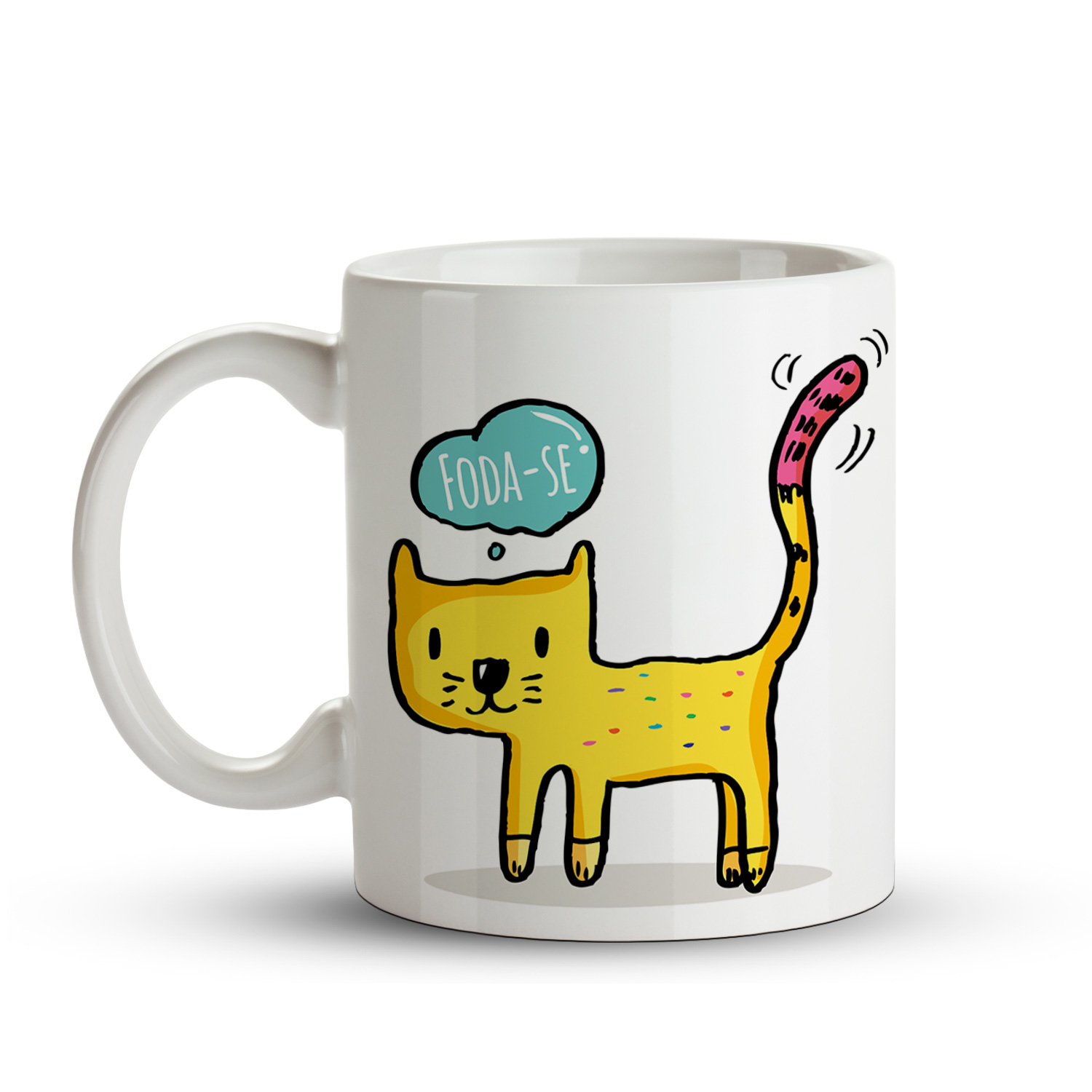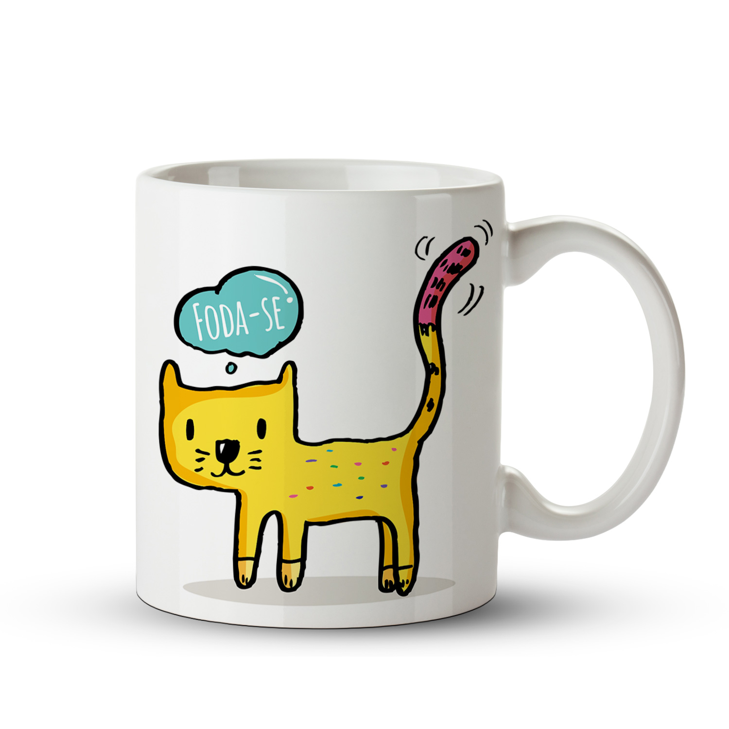 Com a ilustração de um gato preto de olhar intenso e a frase provocativa, a caneca brinca com exageros mentais, sarcasmo e aquele humor que só quem entende aprecia.