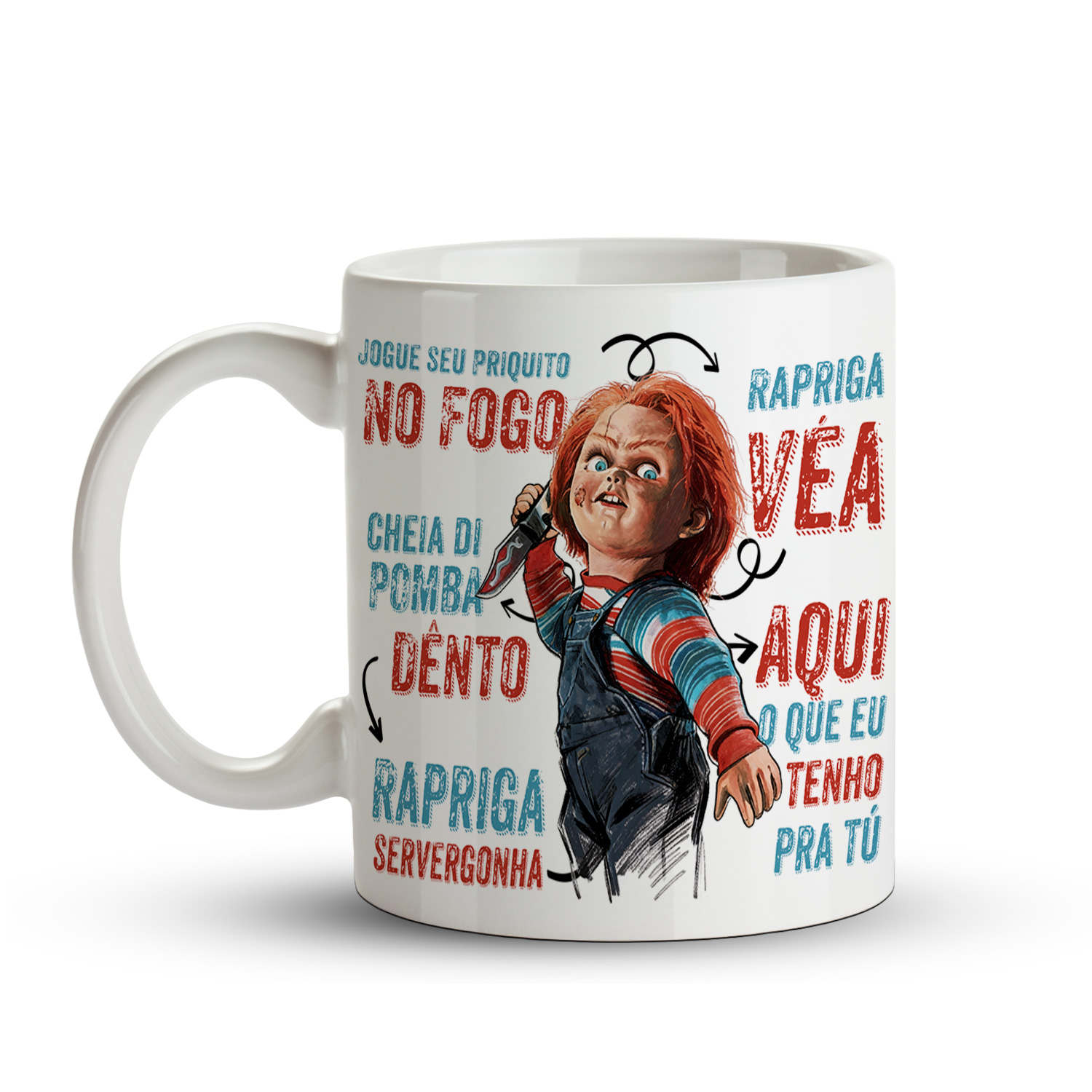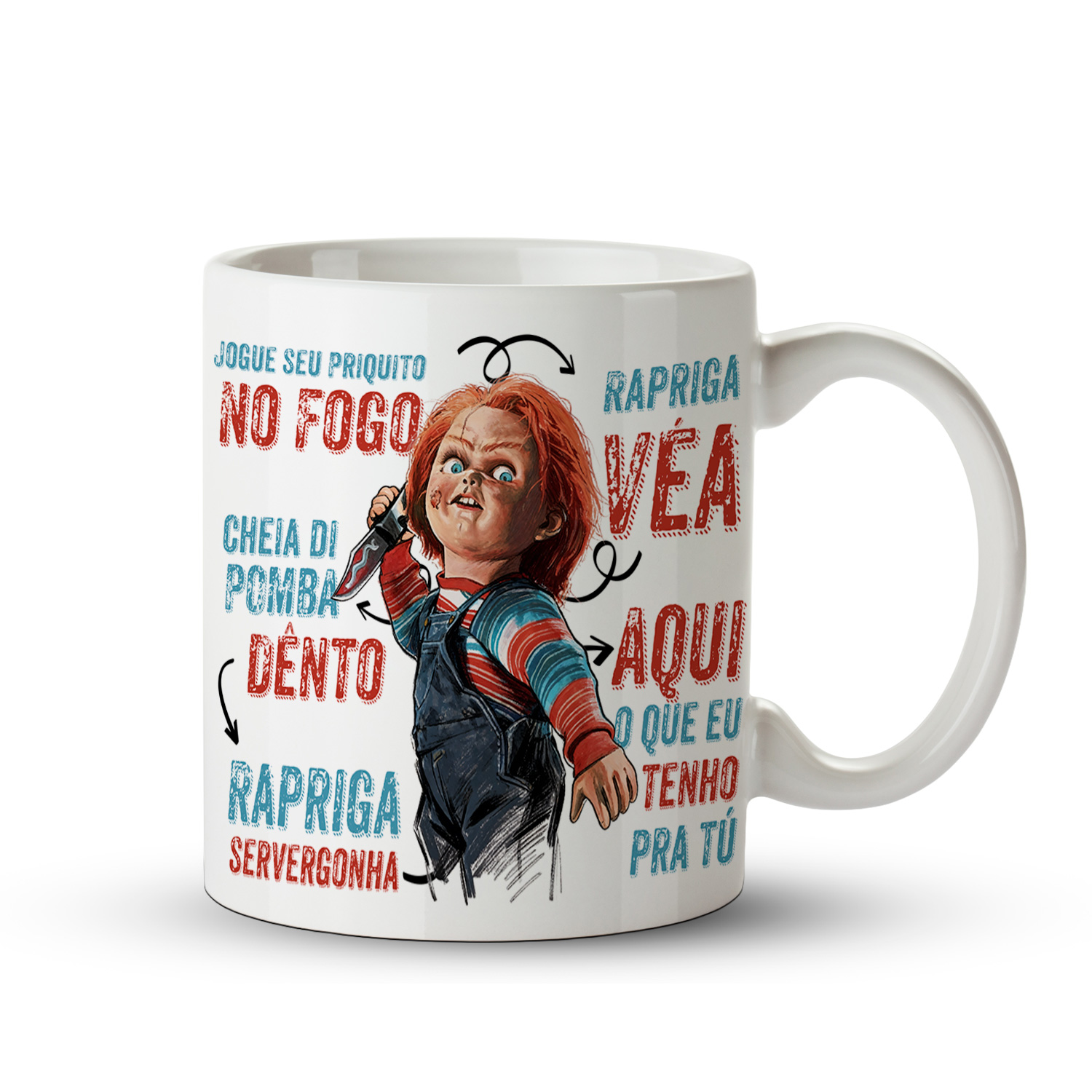 A Caneca Cabeça Cheia de Paranóias e Tendências Violentas é perfeita para quem tem humor ácido, personalidade forte e não se leva tão a sério.