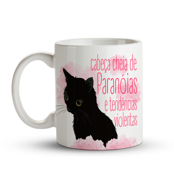 Caneca Cabeça Cheia de Paranóias e Tendências Violentas