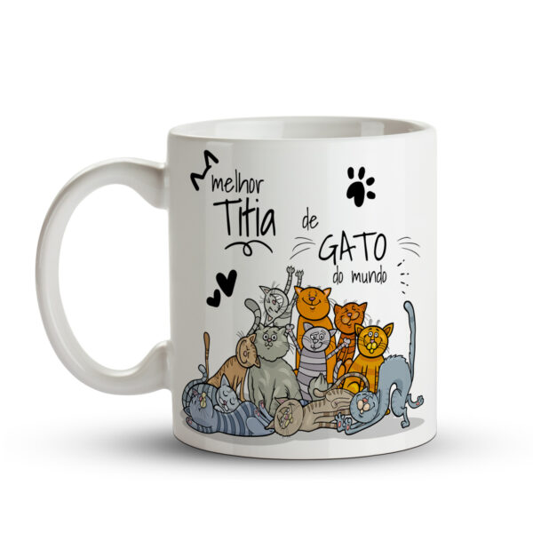 Uma caneca divertida e cheia de carinho para presentear aquela tia que trata os gatinhos como sobrinhos de coração. A arte alegre e colorida combina com qualquer momento do dia e deixa o café ou chá muito mais especial. Ideal para aniversários, datas comemorativas ou para surpreender quem adora gatos. Impressão de alta qualidade que mantém a estampa bonita por muito tempo.