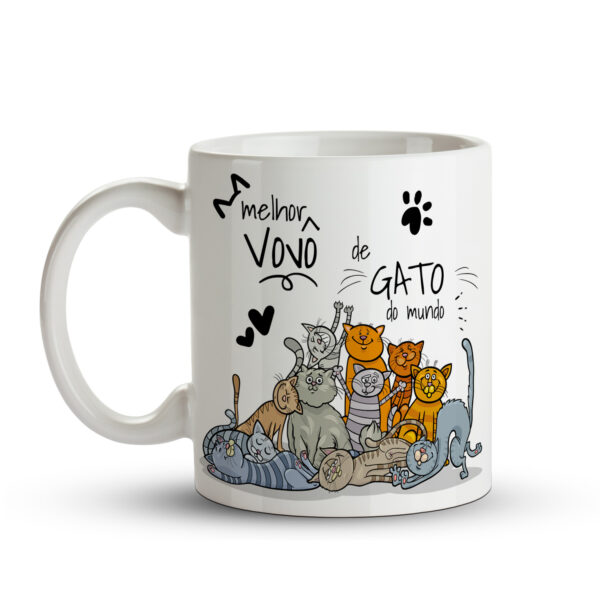 Uma caneca divertida e cheia de personalidade para aquele vovô que tem um carinho especial pelos gatinhos. A ilustração alegre com vários gatos torna o presente ainda mais afetivo e perfeito para o uso diário. Ótima opção para aniversários, datas especiais ou simplesmente para demonstrar carinho. Impressão de alta qualidade que mantém as cores vivas por muito tempo.