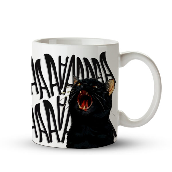 Com uma ilustração intensa e expressiva do gato preto soltando o clássico AAAAA, essa caneca é perfeita para quem ama pets, humor e itens divertidos.