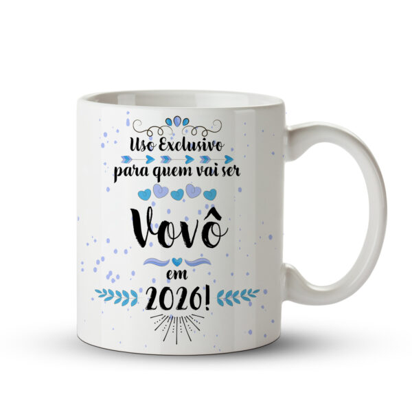 Com a frase “Uso exclusivo para quem vai ser Vovô!”, ela é ideal para anunciar a chegada de um netinho ou netinha de maneira criativa e cheia de carinho. Perfeita para surpreender no café da manhã, em um almoço de família ou durante o chá revelação.