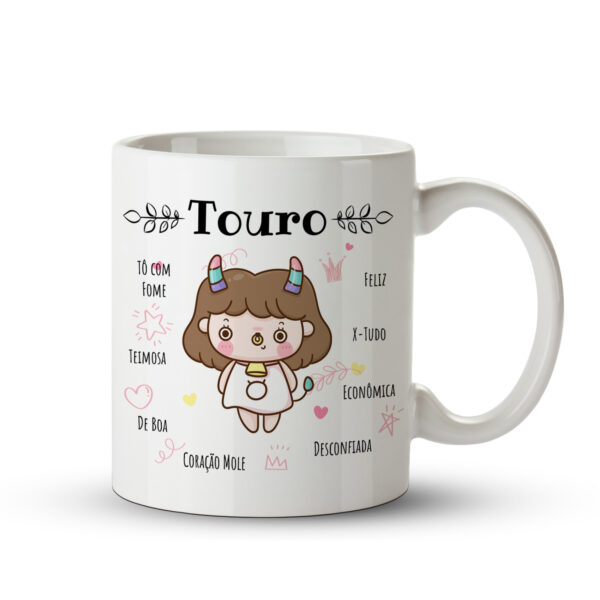 Caneca Signo de Touro – Fofa, Teimosa e Cheia de Amor (e Fome)